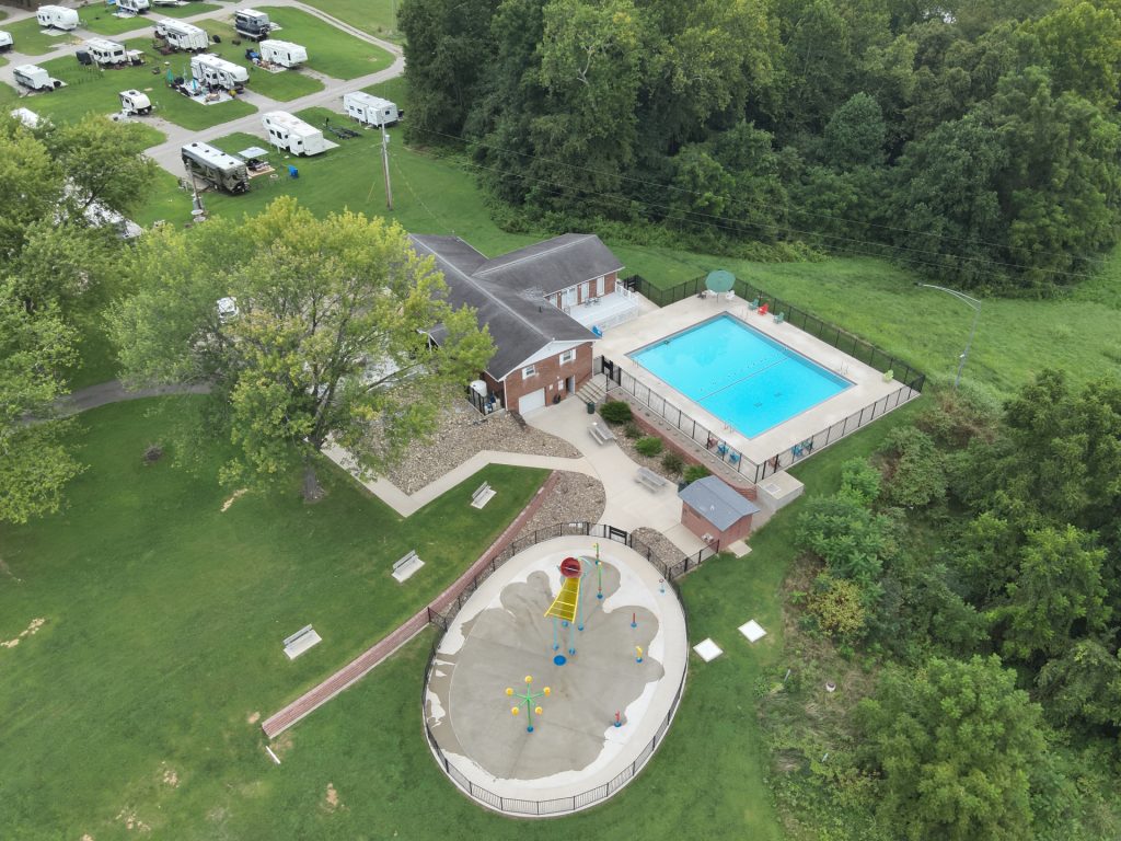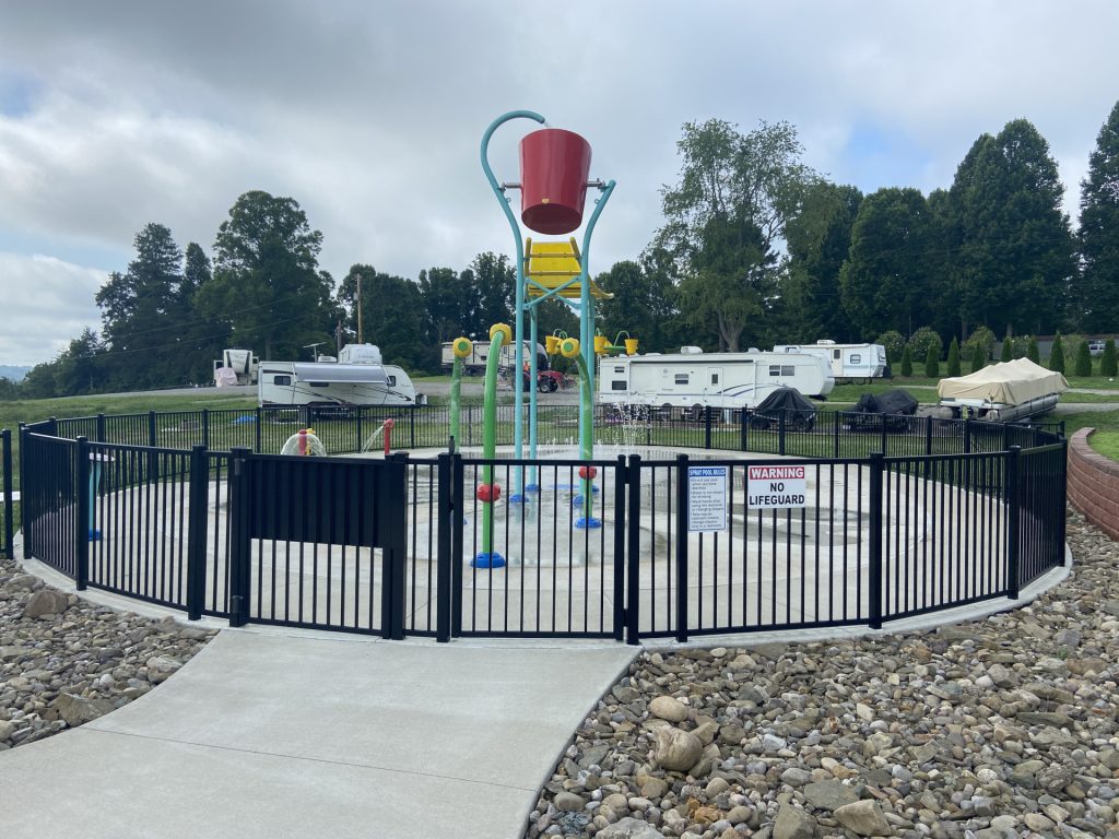 Enjoy our huge private swimming pool and splash pad, available daily from Memorial Day through Labor Day. The splash pad is designed as a safe option for younger children.